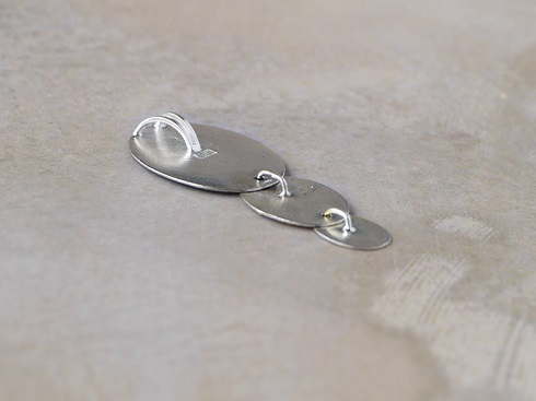 Evaのフック式ピアスはイヤリングに仕立て直せるよう、本体とフックとのあいだにカンをつけてもらってん。
