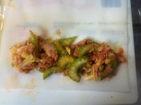 この量で春巻きの皮3枚分は到底無理だとあいしんく。