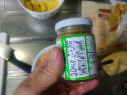 実はこの粒マスタードを使い切りたくて、このレシピを作ろうと思い至ったというのもあるんです。